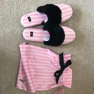 | Victoria S Secret Shoes Nwt Victoria Secret Pink Stripe With Black Accent Slippers Size Large 9 Poshmark |